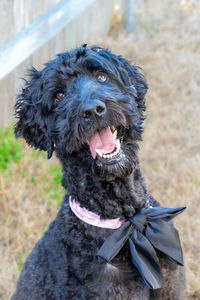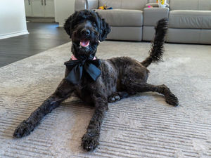 She is devoted and playful. She’s a true Velcro-doodle who is content to lie next to you while you work or follow you around just to be close.