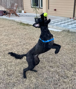This girl has HOPS! She has an impressive vertical leap to catch toys and balls. Her joyful spirit makes her so much fun for playtime.